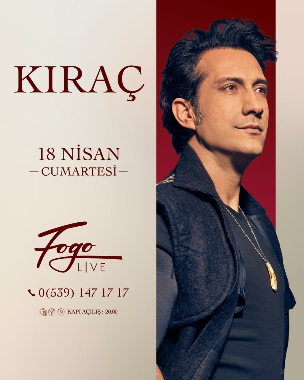 Kıraç 18 Nisan Cumartesi akşamı Fogo Live sahnesinde...