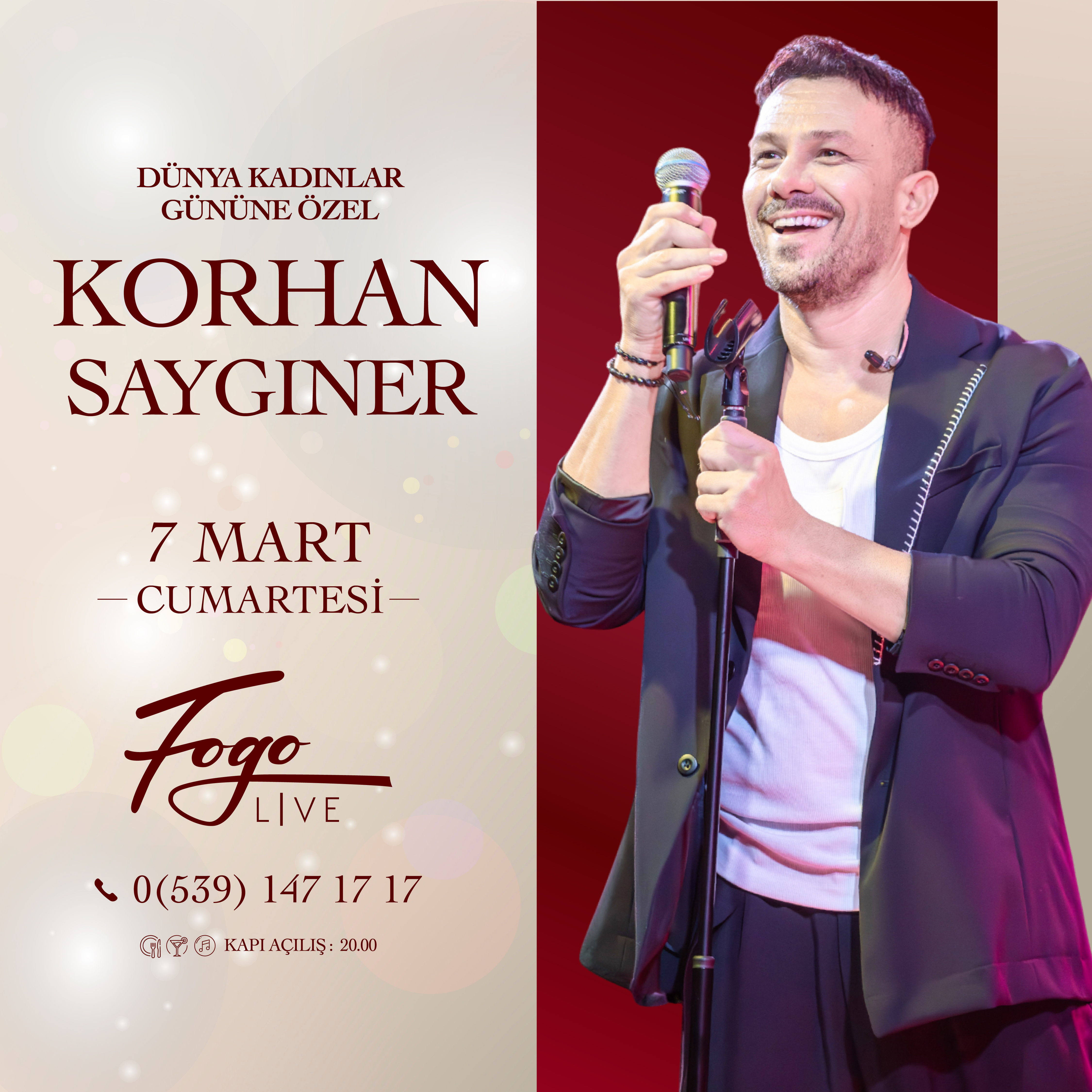 Korhan Saygıner, 7 Mart Cumartesi akşamı Fogo Live sahnesine çıkıyor.