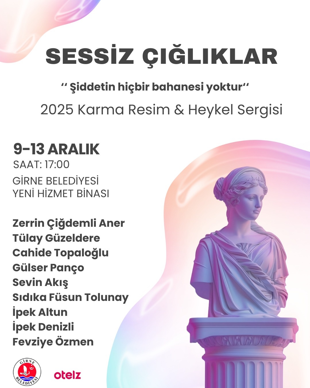Girne Belediyesi, “Sessiz Çığlıklar” karma resim ve heykel sergisini, 9 Aralık’ta saat 17.00’de yapılacak açılış kokteyliyle sanatseverlerle buluşturacak.