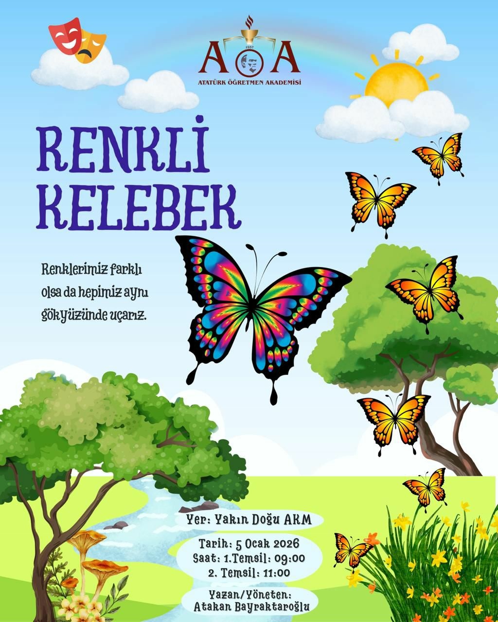 Atatürk Öğretmen Akademisi (AÖA) öğrencileri yarın "Renkli Kelebek" tiyatro etkinliği düzenleyecek.
