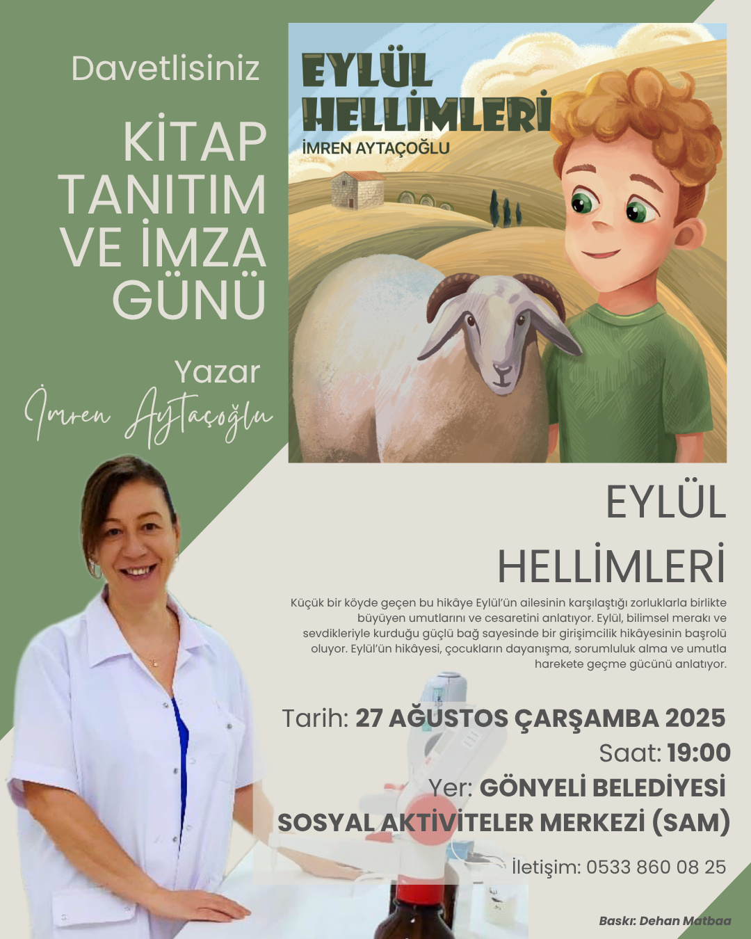 Yazar İmren Aytaçoğlu’nun çocuklar için kaleme aldığı “Eylül Hellimleri” kitabı için tanıtım ve imza günü yapılacak.