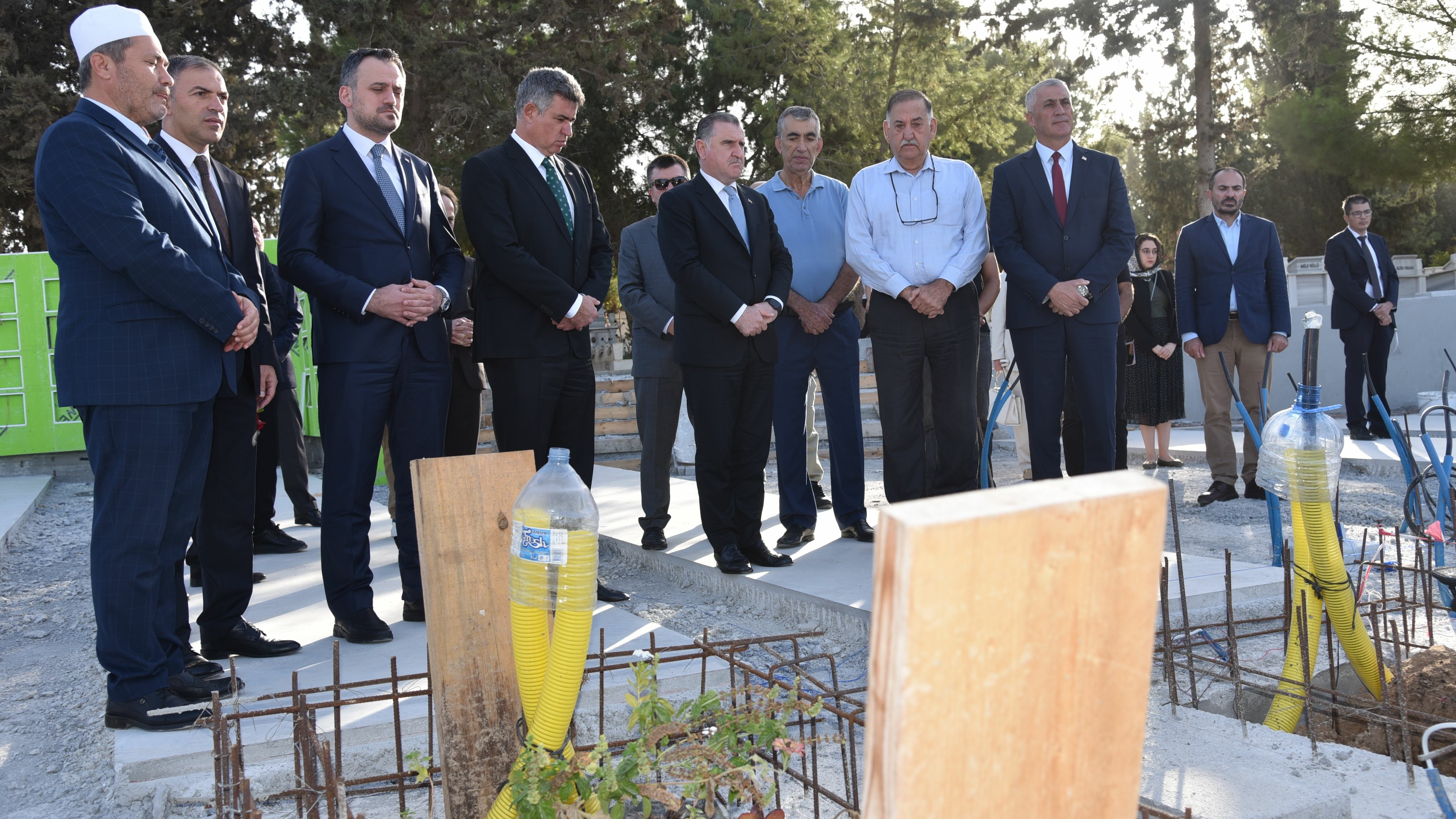 Türkiye’nin Lefkoşa Büyükelçisi Metin Feyzioğlu’yla birlikte Gazimağusa Kabristanlığı'na giden konuk bakan Bak’ı burada Ekonomi ve Enerji Bakanı Olgun Amcaoğlu ve Şampiyon Melekler’in aileleri karşıladı.