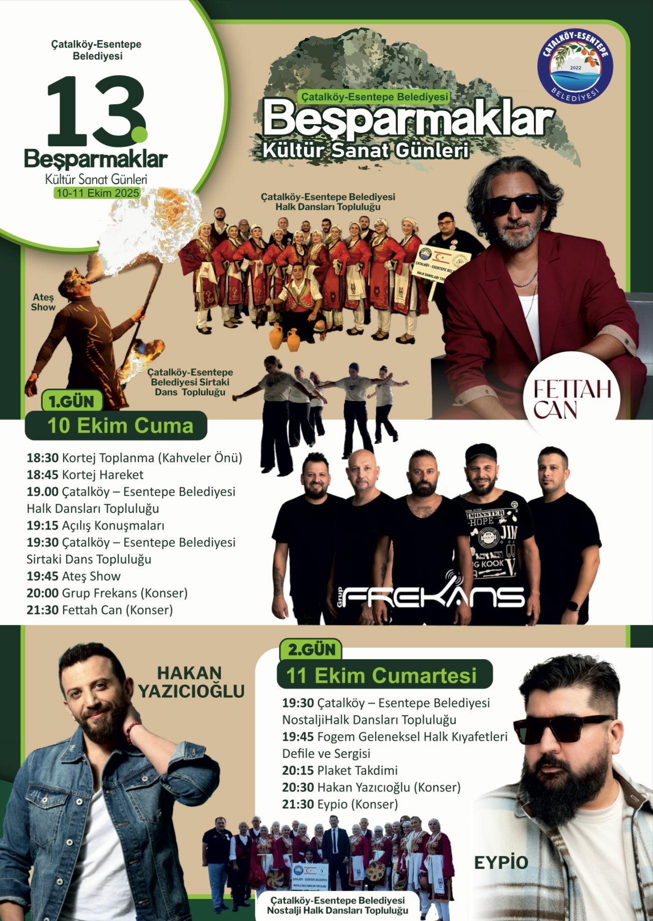 Çatalköy – Esentepe Belediyesi'nin bu yıl 13'üncüsünü düzenleyeceği Beşparmaklar Kültür Sanat Günleri, 10 – 11 Ekim günleri yapılıyor.