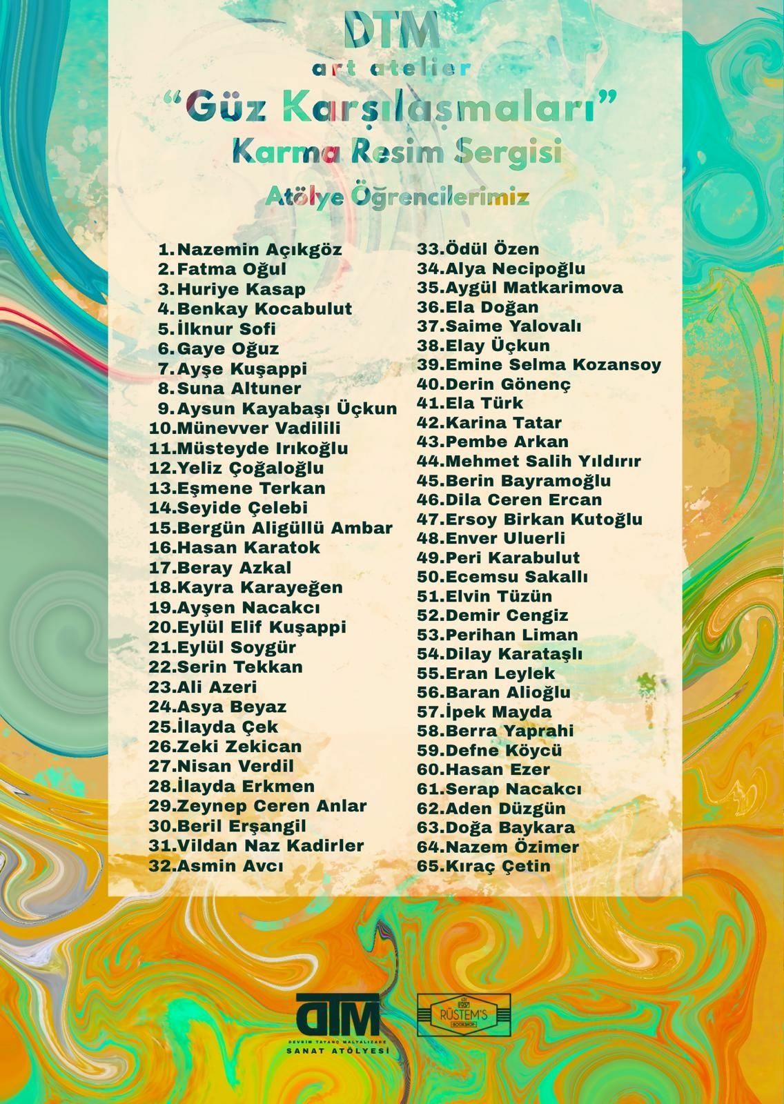 "Resim, desen ve karma teknik alanlarında üretilen çalışmalar, çeşitli teknikleri ve bakış açılarını bir arada sunuyor. Sergi, deney, diyalog ve kişisel ifadenin sanatsal gelişimin merkezinde olduğu atölye anlayışını yansıtıyor. Güz Karşılaşmaları, DTM Sanat Atölyesi topluluğunu tanımlayan çeşitlilik, merak ve bağlılığı izleyiciyle buluşturmaya davet ediyor."