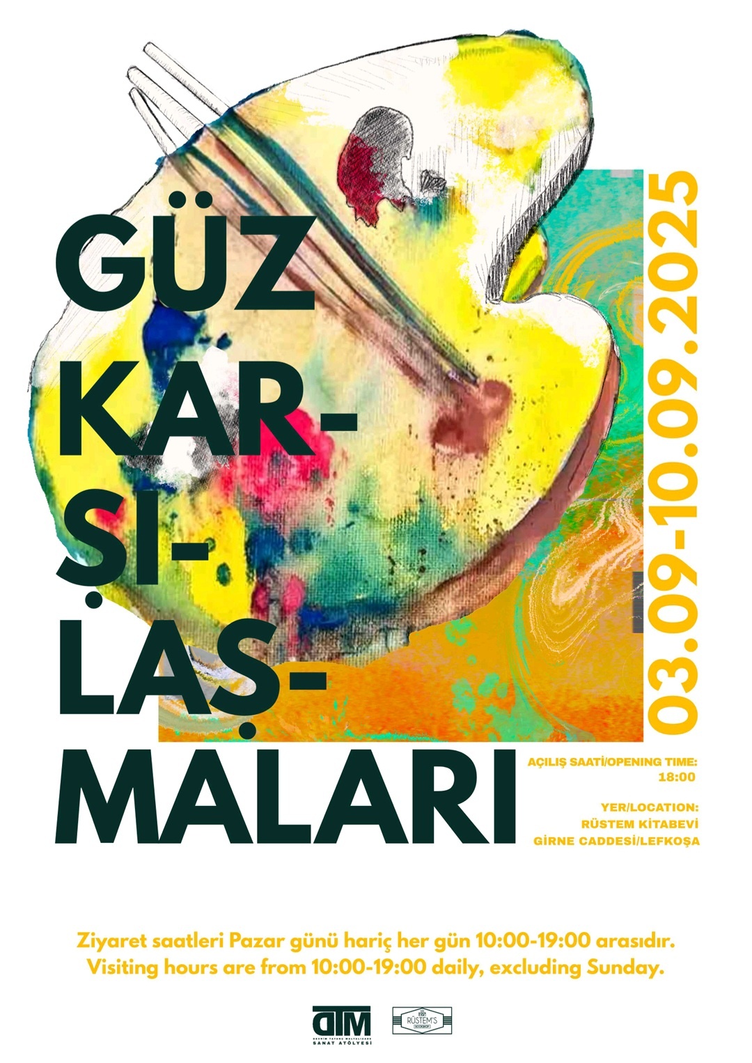 Lefkoşa'da, Girne Caddesi üzerindeki Rüstem Kitapevi'nde yer alacak serginin açılışı, 3 Eylül’de saat 18.00’da yapılacak. DTM Sanat Atölyesinin 17’nci sergisi, 10.00-19.00 saatleri arasında ziyaret edilebilecek.