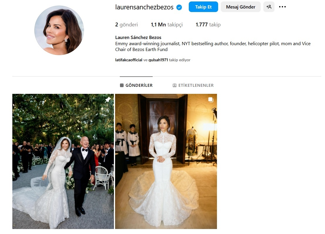Çiftin düğünü basına kapalı gerçekleşti. Lauren Sanchez, evliliklerini Instagram hesabından paylaştığı bir kare fotoğrafla duyururken, soyadı kısmına "Bezos"u eklediği görüldü.