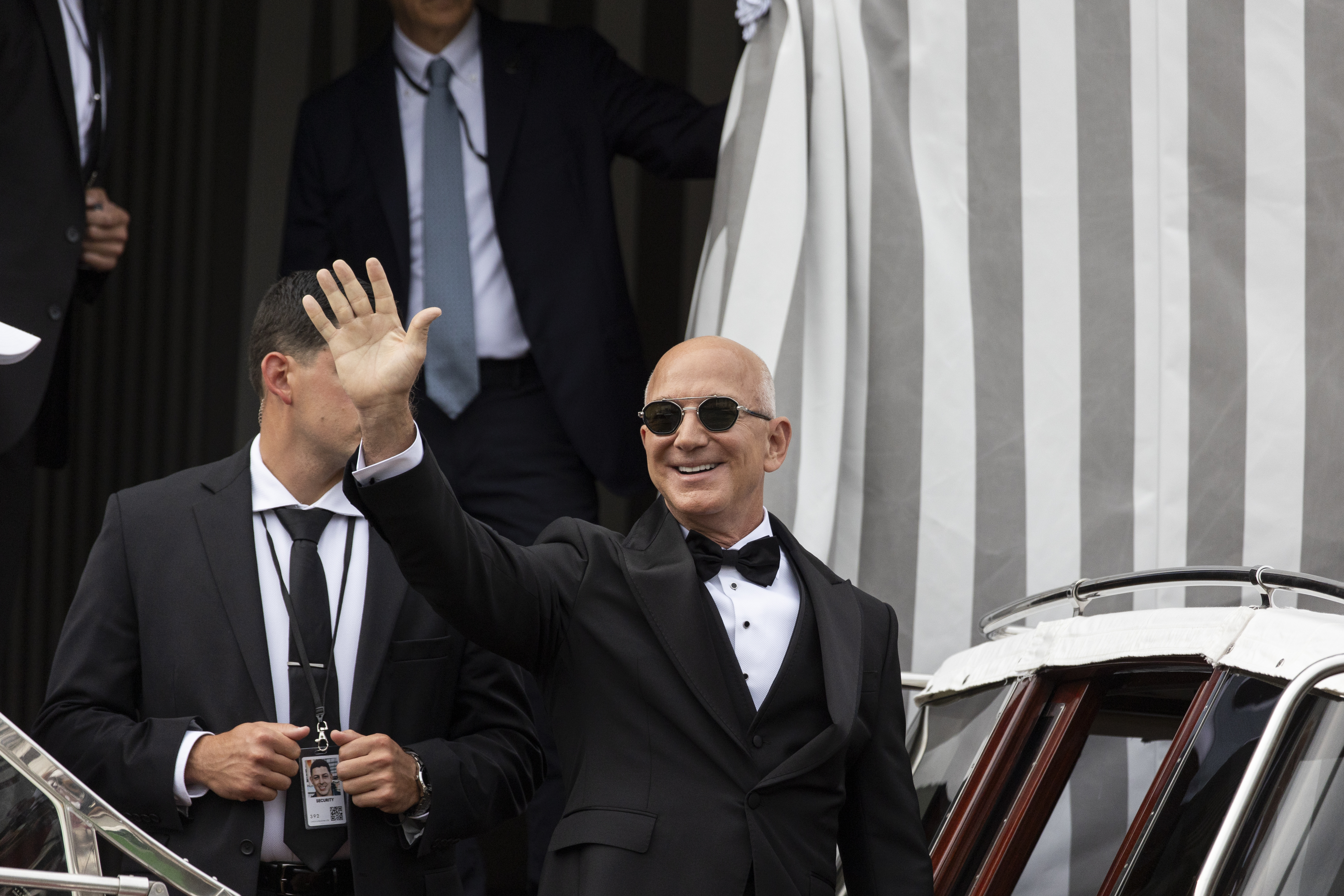 23 Haziran’da Greenpeace Italia ve İngiliz "Everyone Hates Elon (Herkes Elon'dan nefret eder)" isimli grup, yine Aziz Mark (San Marco) Meydanı'nda üzerinde Bezos'un bir fotoğrafı ve İngilizce "Düğününüz için Venedik'i kiralayabiliyorsanız, daha fazla vergi de ödeyebilirsiniz" yazılı 400 metrekarelik bir pankart açmıştı. Polis bunu toplayarak kaldırmıştı.