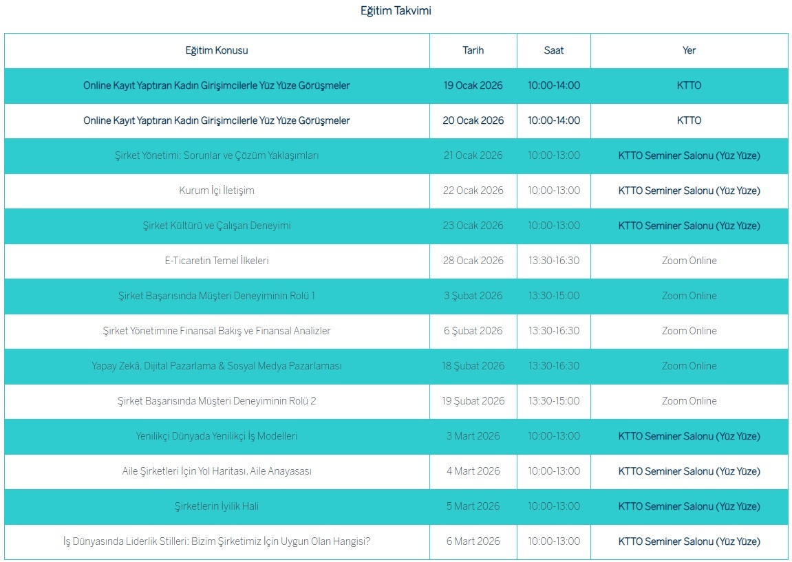 Eğitim programında dijital pazarlama, insan kaynakları, müşteri deneyimi, kurum içi iletişim, sosyal medya ve e-ticaret, finansal yönetim, liderlik, sürdürülebilir şirket yönetimi, yenilikçi iş modelleri, ticaret hukuku ve sözleşmeler konuları var.
