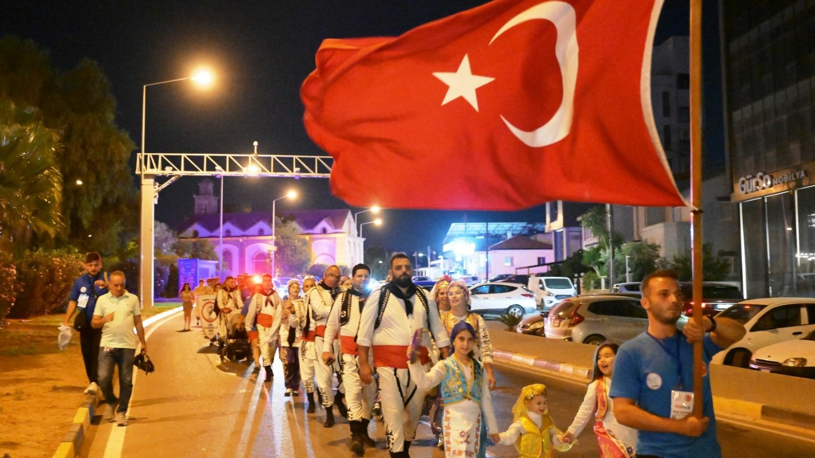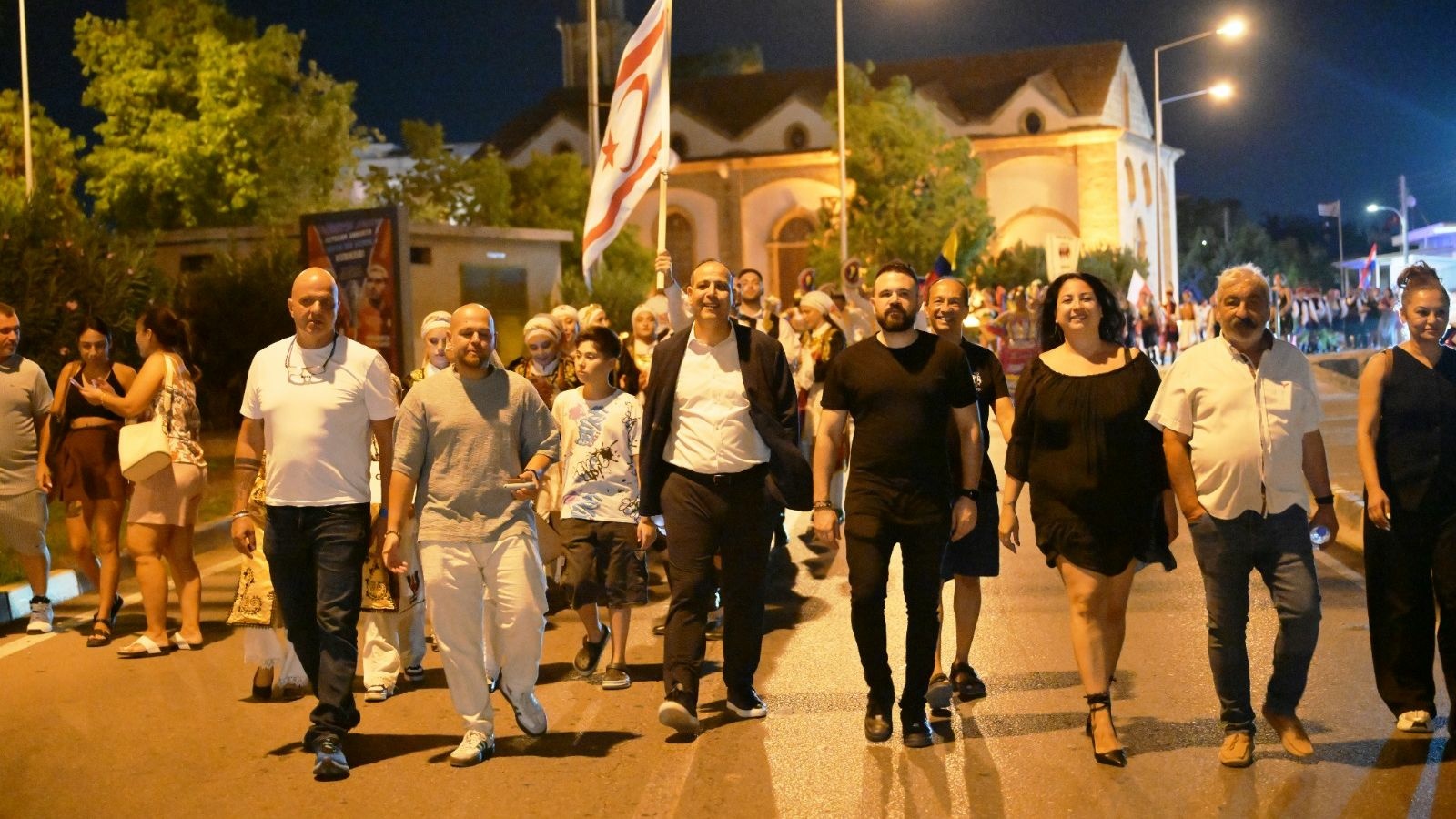 LTB Başkanı Mehmet Harmancı ve bazı belediye meclis üyelerinin de eşlik ettiği kortej, Kızılbaş Parkı’nda yer alan Cuma Mağusalı Amfi Alanı’na geldi ve dünya barışına vurgu yapan açılış şarkısı ile uluslararası festival seyircilerle buluştu.