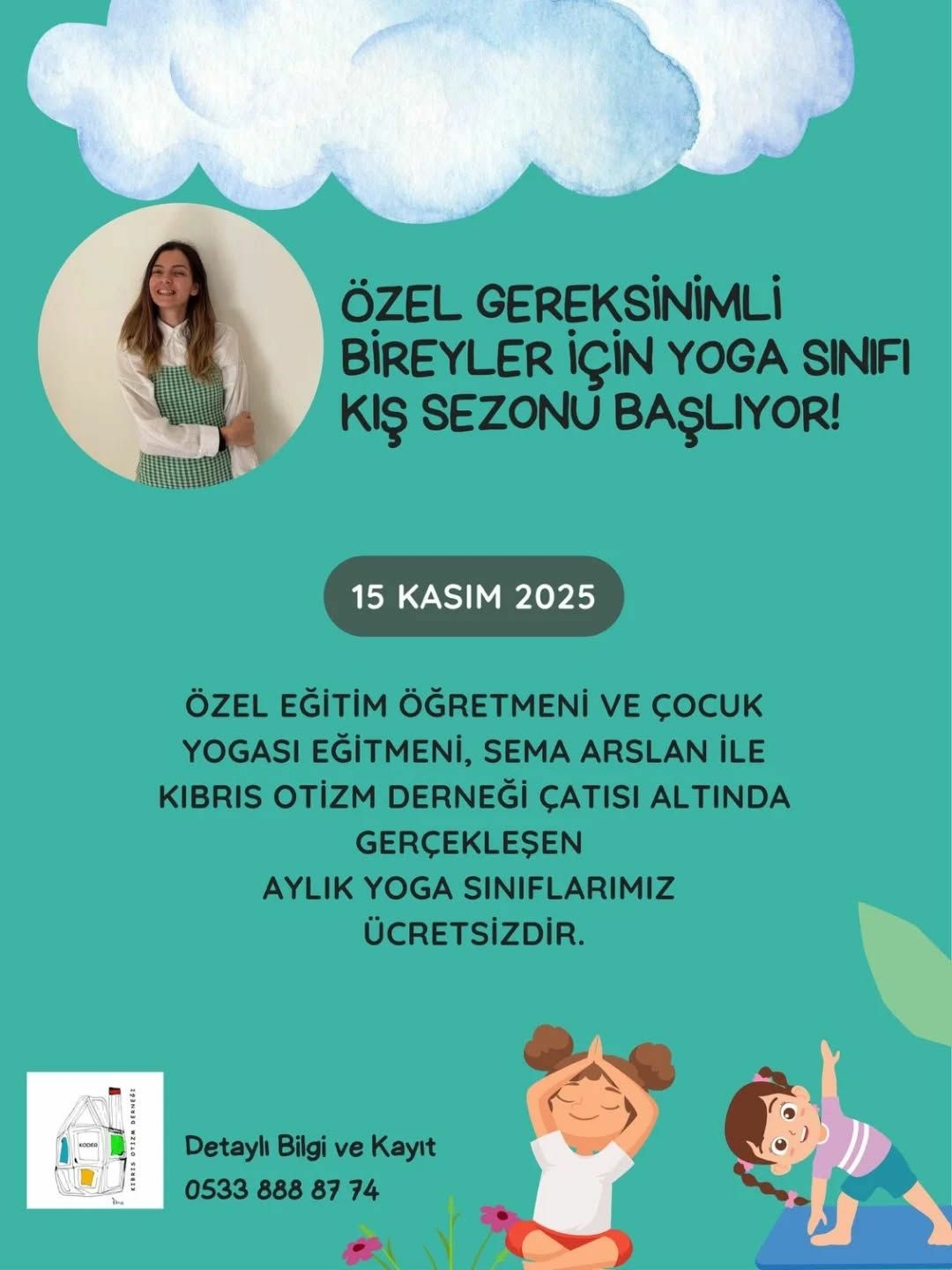 Kıbrıs Otizm Derneği (KODER) tarafından özel gereksinimli bireylere yönelik düzenlenen ücretsiz yoga kursları 15 Kasım Cumartesi günü başlayacak.
