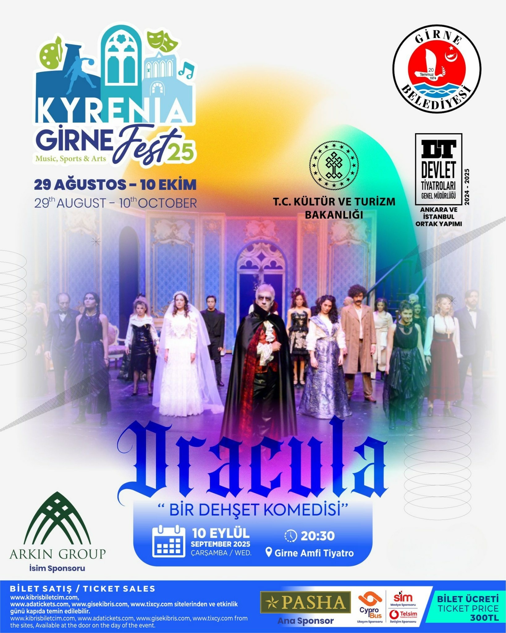Girne Arkın Group Fest 25 kapsamında, Ankara ve İstanbul Devlet Tiyatroları ortak yapımı "Dracula: Bir Dehşet Komedisi" adlı tiyatro oyunu sahnelenecek.