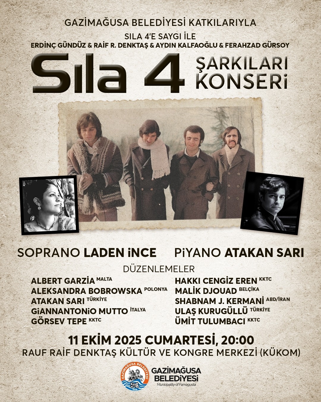 Sıla 4 grubunun şarkıları, KKTC'nin yanı sıra birçok ülkeden sanatçının yer aldığı Gazimağusa'da cumartesi günü düzenlenecek konserle seslendirilecek.