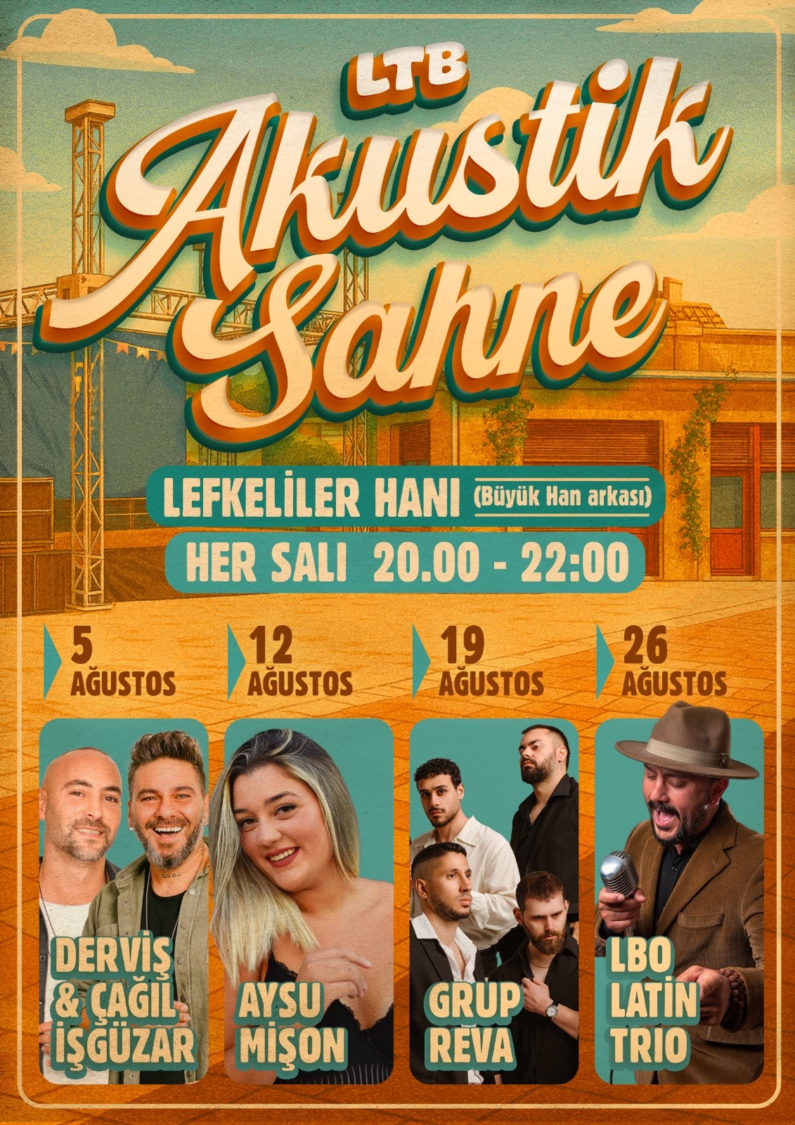 LTB’den verilen bilgiye göre, şehrin tarihi ve kültürel dokusunu barındıran Büyük Han arkasındaki Lefkeliler Hanı, LTB Akustik Sahne konserlerine ev sahipliği yapacak.
