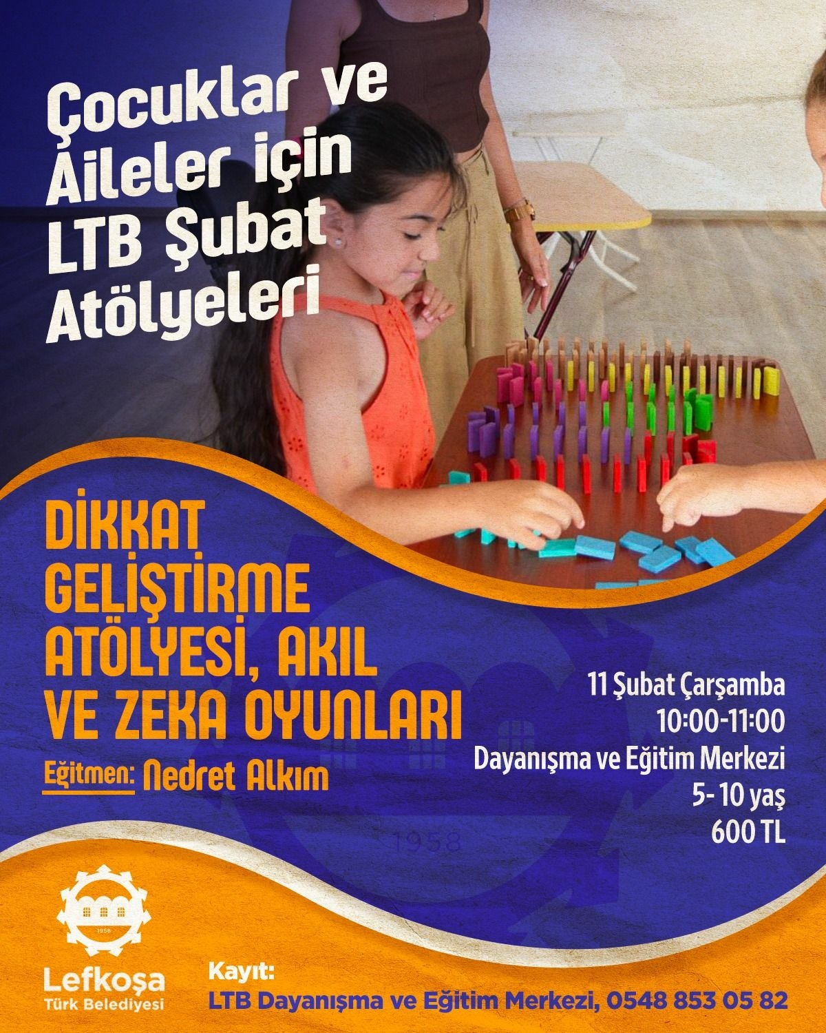 Dikkat Geliştirme, Akıl ve Zeka Oyunları: Eğitmen Nedret Alkım eşliğinde zihinsel antrenman, 11 Şubat Çarşamba günü 10.00-11.00 saatlerinde Dayanışma ve Eğitim Merkezi'nde. (5-10 yaş | 600 TL).