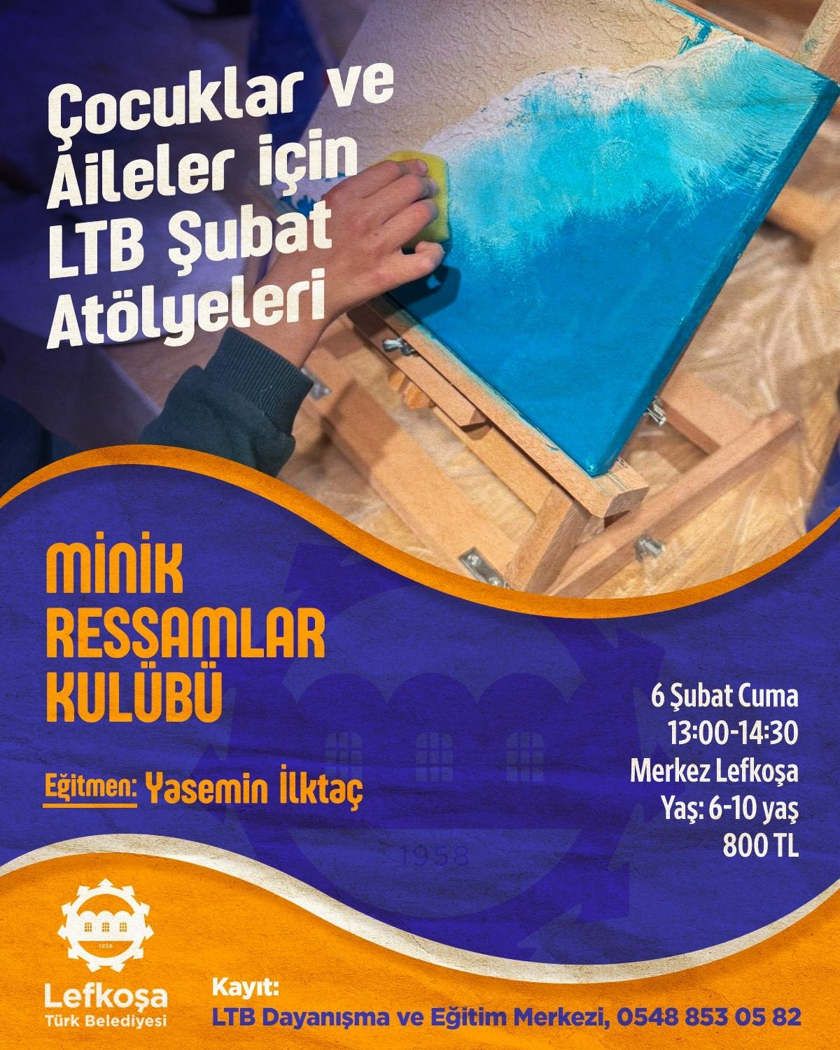 Minik Ressamlar Kulübü: Eğitmen Yasemin İlktaç ile renklerin dünyasına yolculuk, 6 Şubat Cuma günü 13.00-14.30 saatlerinde Merkez Lefkoşa'da. (6-10 yaş | 800 TL).