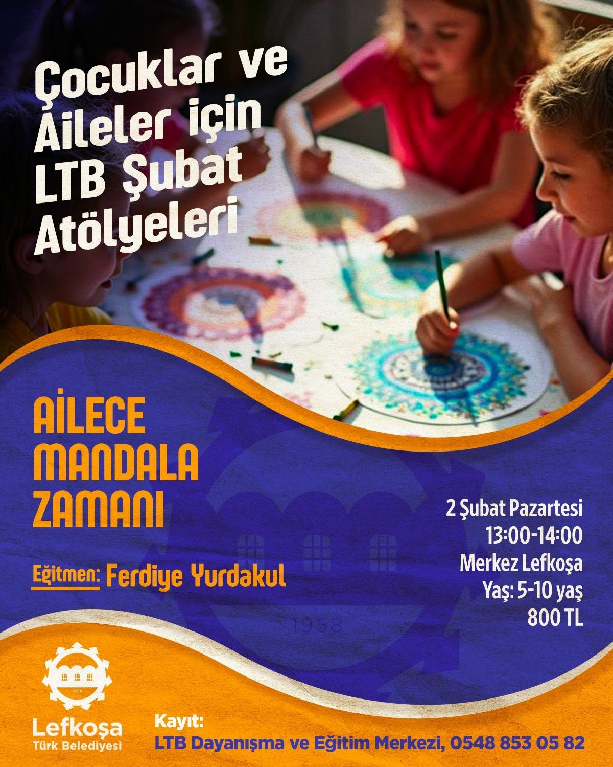 Ailece Mandala Zamanı: Eğitmen Ferdiye Yurdakul eşliğinde, 2 Şubat Pazartesi günü 13.00-14.00 saatlerinde Merkez Lefkoşa'da gerçekleştirilecek. (5-10 yaş | 800 TL).