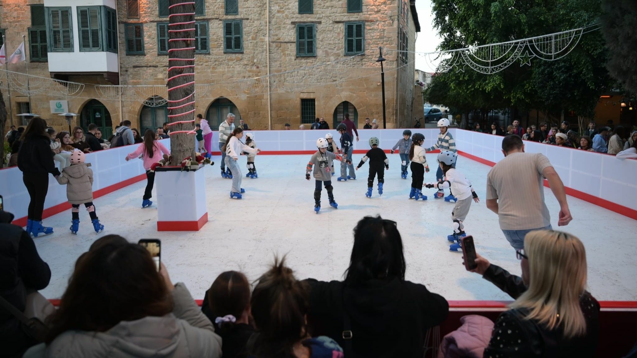 Lefkoşa Selimiye Meydanı'nda kurulan sentetik buz pistinin açılışı dün gerçekleştirildi.