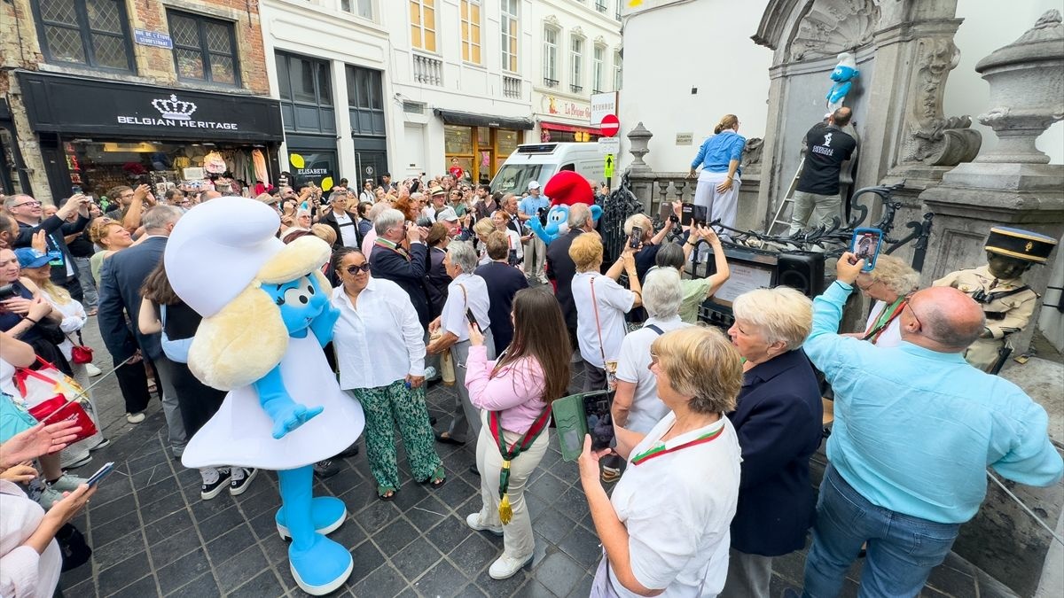 Kentin simgelerinden Manneken Pis heykeli de Şirinler temalı kostümlerle süslendi.