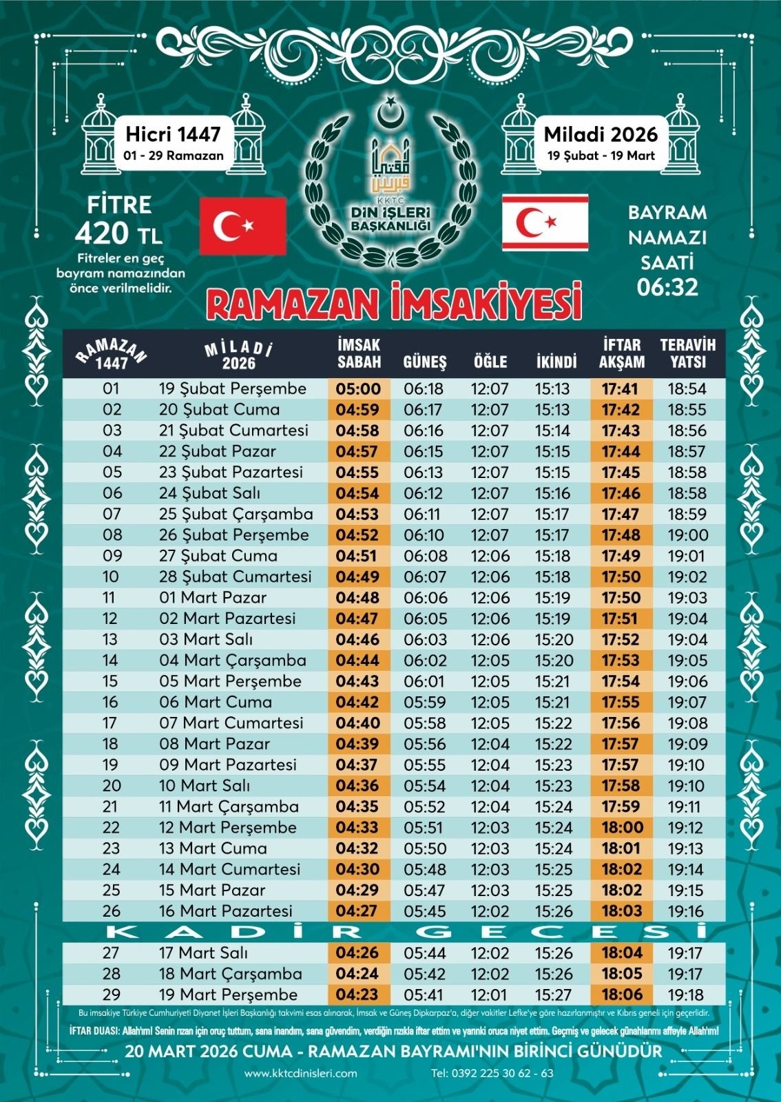KKTC genelinde ilk teravih namazı saat 18:53’te yatsı namazının ardından kılınacak.