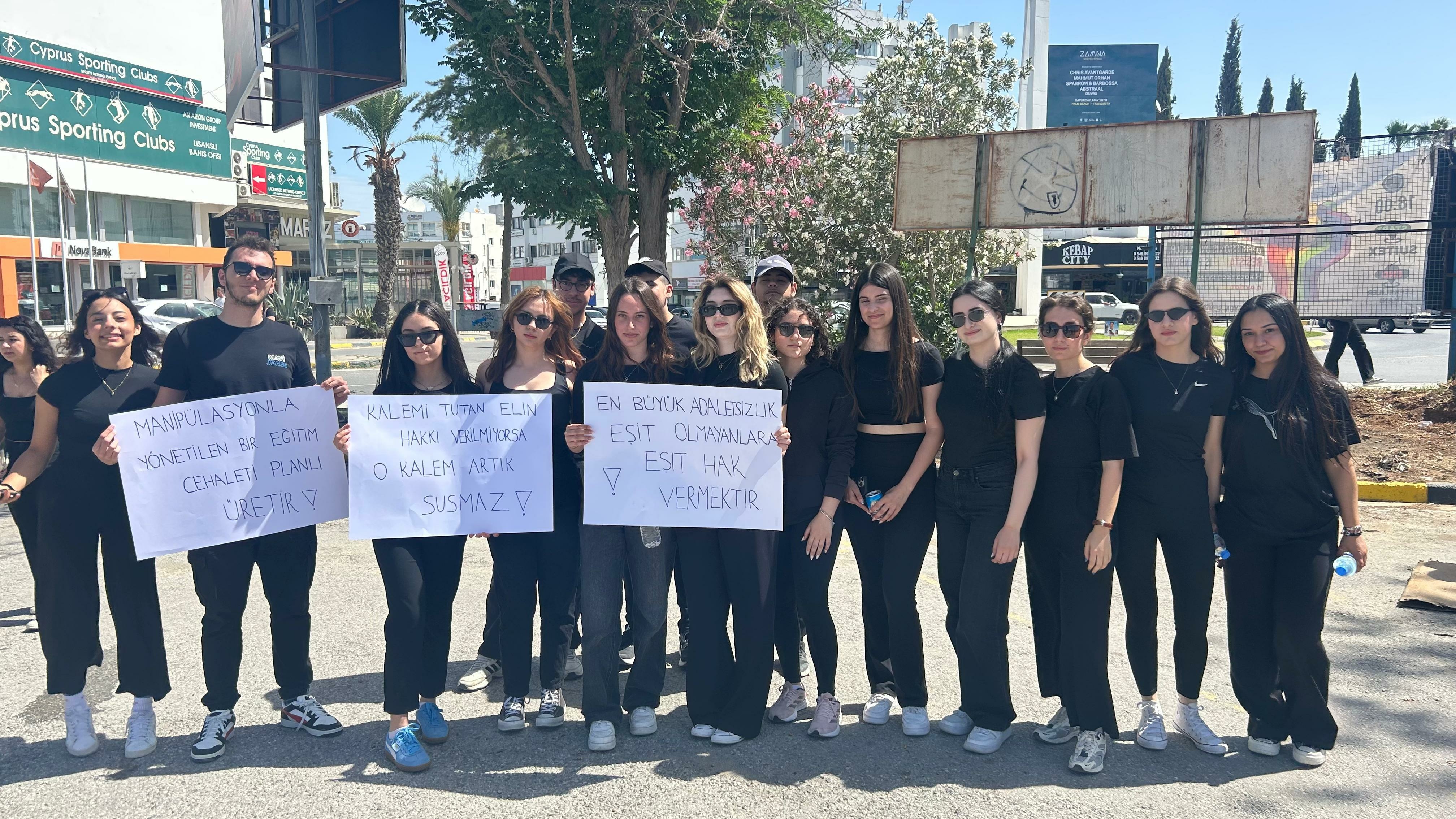 Lefkoşa Terminali'nden Milli Eğitim Bakanlığı'na yürüyüş düzenleyen öğrenciler, yaptıkları basın açıklamasında taleplerini dile getirip, Milli Eğitim Bakanı Nazım Çavuşoğlu'ndan açıklama yapmasını istedi.