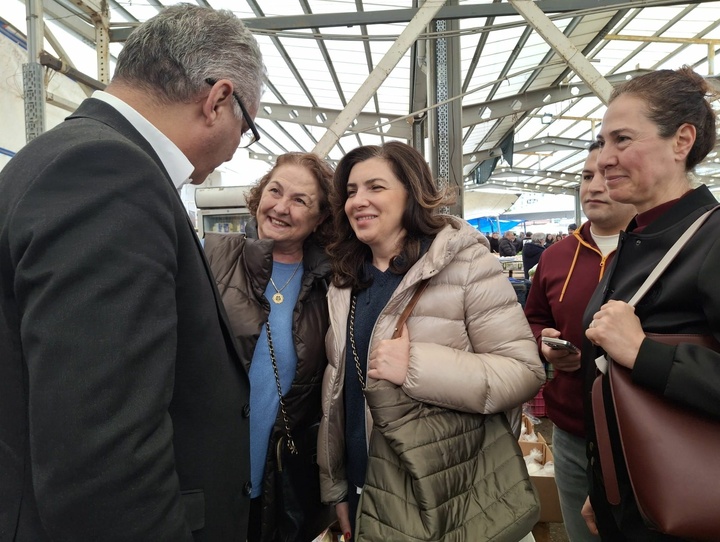 Saat 12.00-13.00 arasında heyetiyle birlikte pazarı gezen Cumhurbaşkanı Erhürman, Girne'de esnaf ve halkla bir araya geldi.