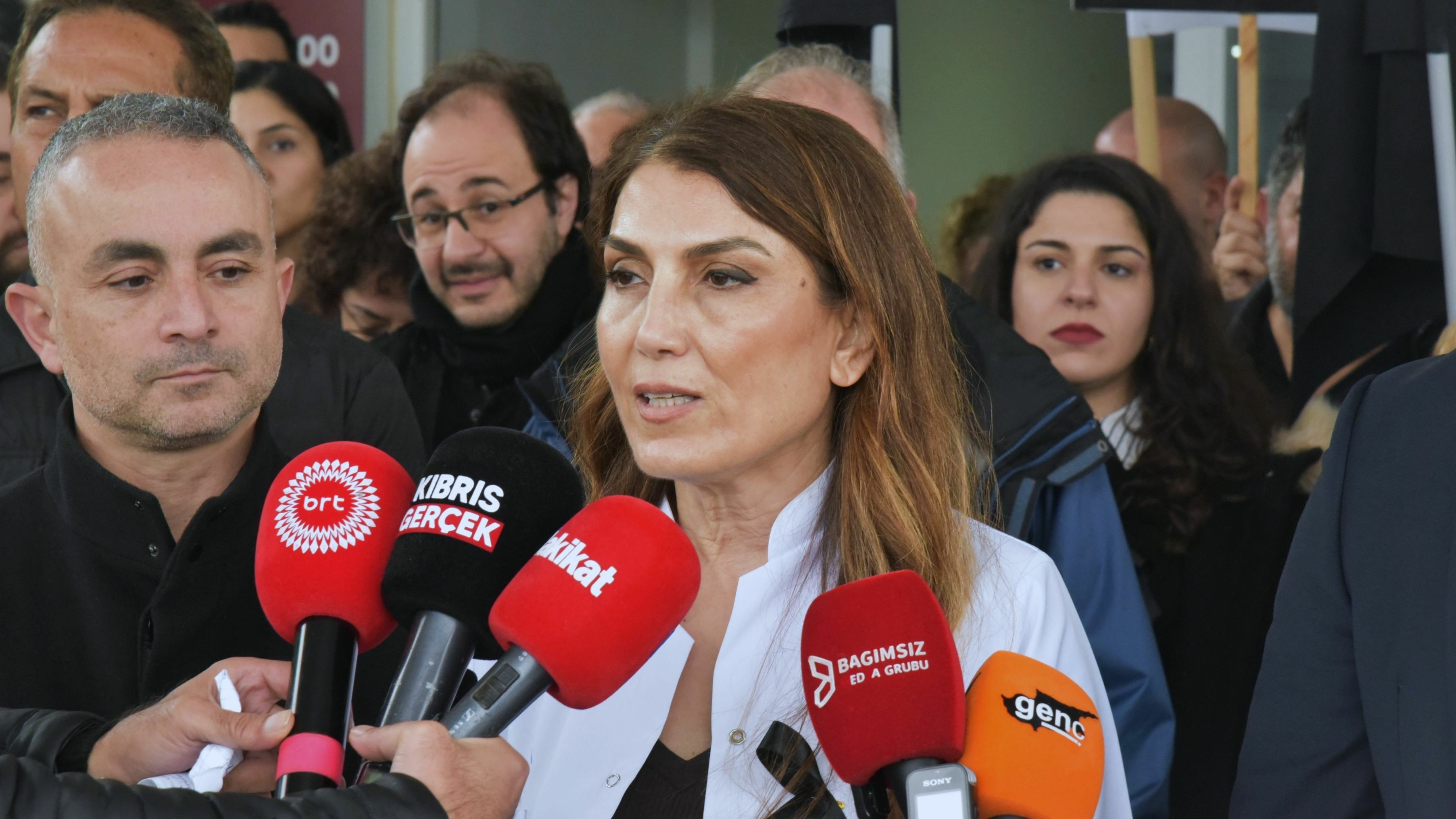 Lefkoşa Burhan Nalbantoğlu Devlet Hastanesi önünde yapılan basın açıklamasında siyah bayraklar açılırken, eylemin “yas, protesto ve mücadele azminin simgesi” olduğu vurgulandı.