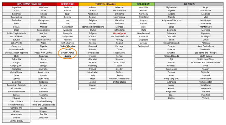 Bulaşıcı Hastalıklar Üst Komitesi'nin 8 Temmuz'da açıklanan yeni kararlarına göre, İngiltere; Güney Kıbrıs ve Rusya ile birlikte “kırmızı kodlu” ülkeler arasına alındı.