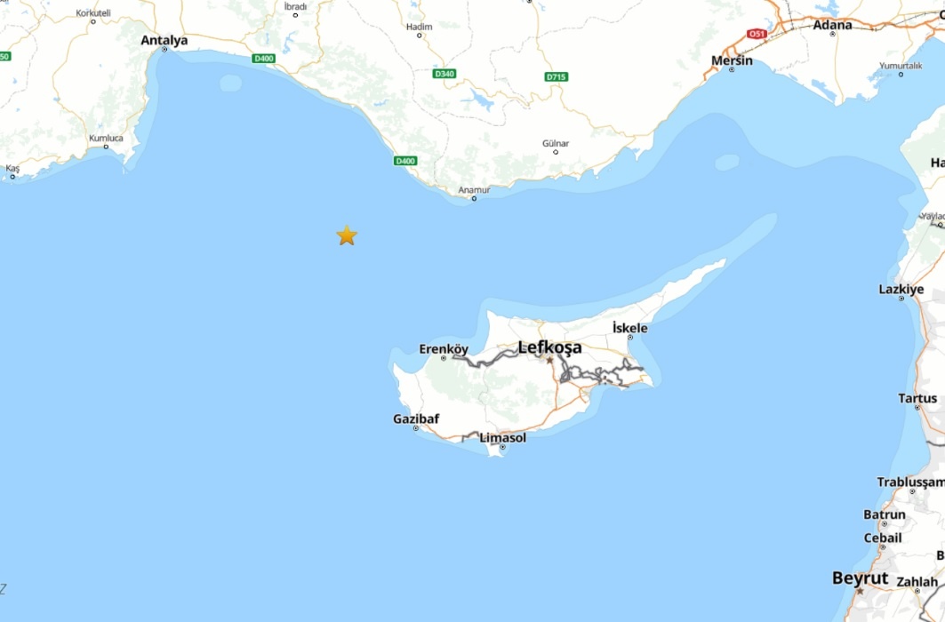 Meteoroloji Dairesi, Kıbrıs'ın kuzey batısında Akdeniz'de deprem meydana geldiğini duyurdu.