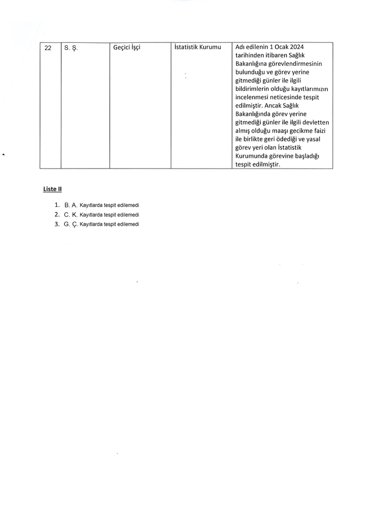 Bengihan, bu bağlamda, 25 kamu çalışanıyla ilgili gerekli denetimlerin yapıldığını, geriye kalanların görev yaptıkları kurumlara ise henüz denetim gerçekleştirilmediğini ve denetimler gerçekleştirilince bilgi verileceğinin kendilerine iletildiğini aktardı.