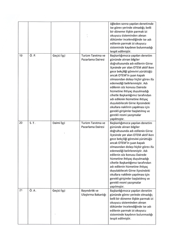 KTAMS ve KİEF, kendilerine bildirilen "özürsüz ve izinsiz görev yerlerine gitmeyen" 70 kamu çalışanından 25’i hakkında yapılan denetim sonuçlarını kamuoyu ile paylaştı.