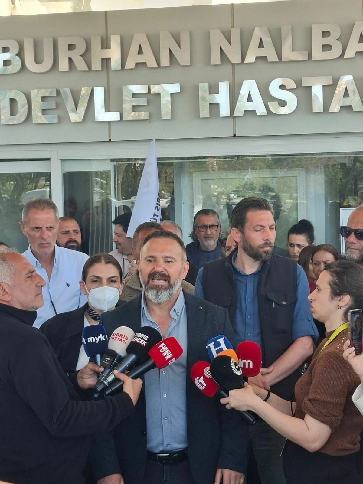 Hayat pahalılığı ödeneğini donduran düzenlemeye karşı genel greve çıkan sendikalar, Lefkoşa’da Dr. Burhan Nalbantoğlu Devlet Hastanesi önünde basın açıklamasında bulundu.