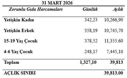 Buna göre KTAMS, 31 Mart itibarıyla dört kişilik bir ailenin açlık sınırını 39 bin 813 TL, yoksulluk sınırını ise 214 bin 742 TL olarak hesapladı.