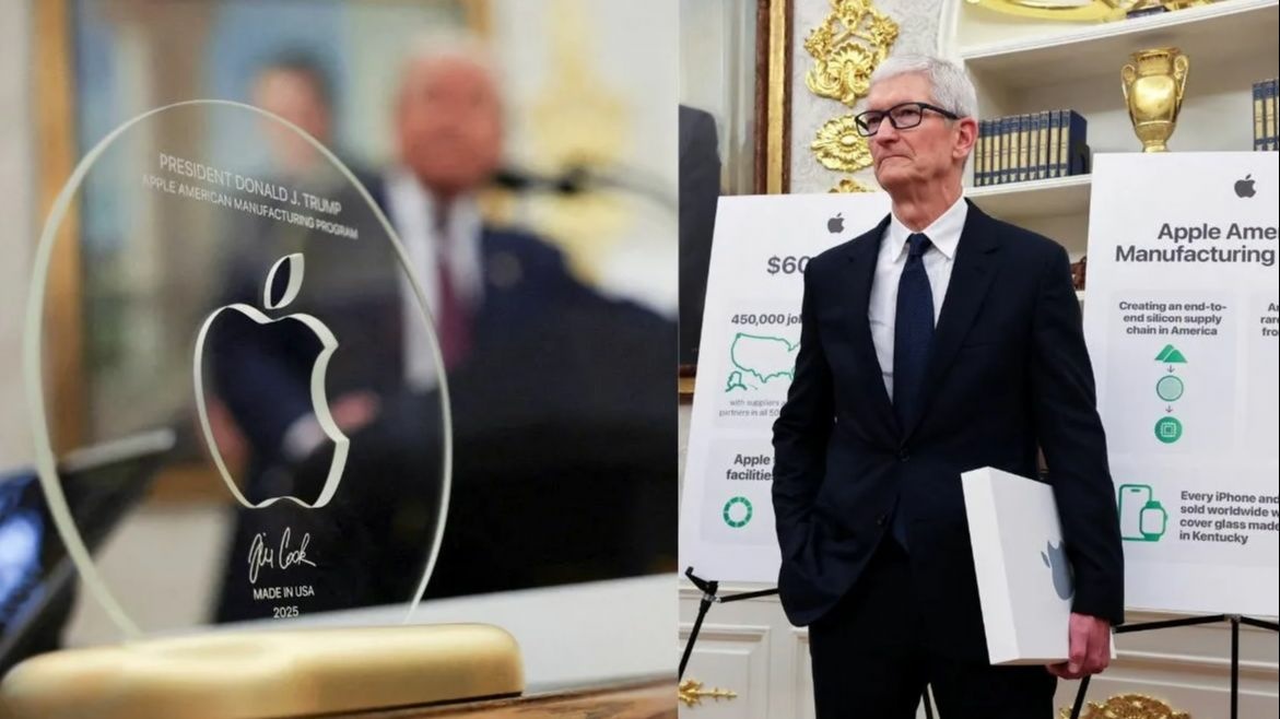Apple CEO’su Tim Cook’un kendisine 24 ayar altın kaplama bir ABD yapımı hatıra sunduğu sırada konuşan Trump, bu yatırımı “Amerika’da satılan iPhone’ların Amerika’da üretilmesi hedefimize atılmış önemli bir adım” olarak nitelendirdi.