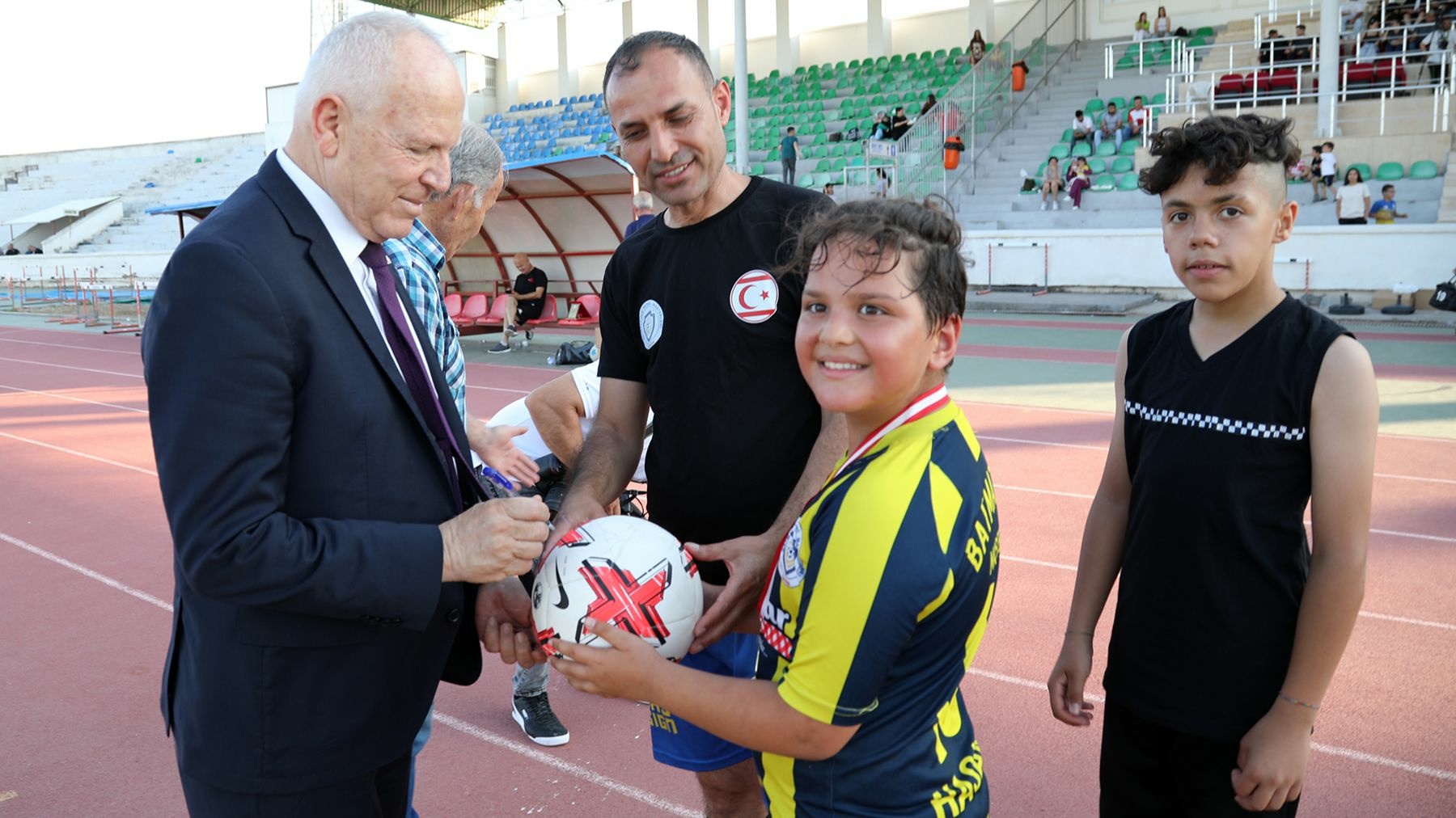 Töre, oyunculara madalya ve kupaları verirken, maçın başlama vuruşunu da yaptı.