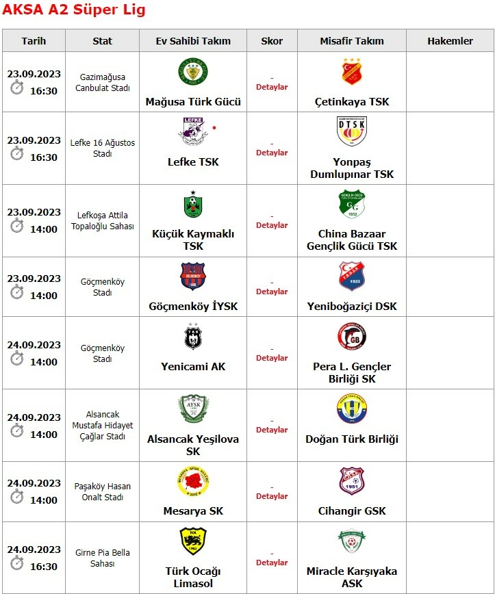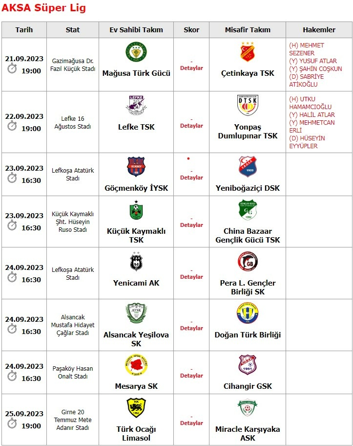 Kıbrıs Türk Futbol Federasyonu (KTFF) tarafından organize edilen AKSA Süper Lig, AKSA 1'inci Lig ve AKSA A2 Ligleri'nde 1'inci hafta programı belli oldu.