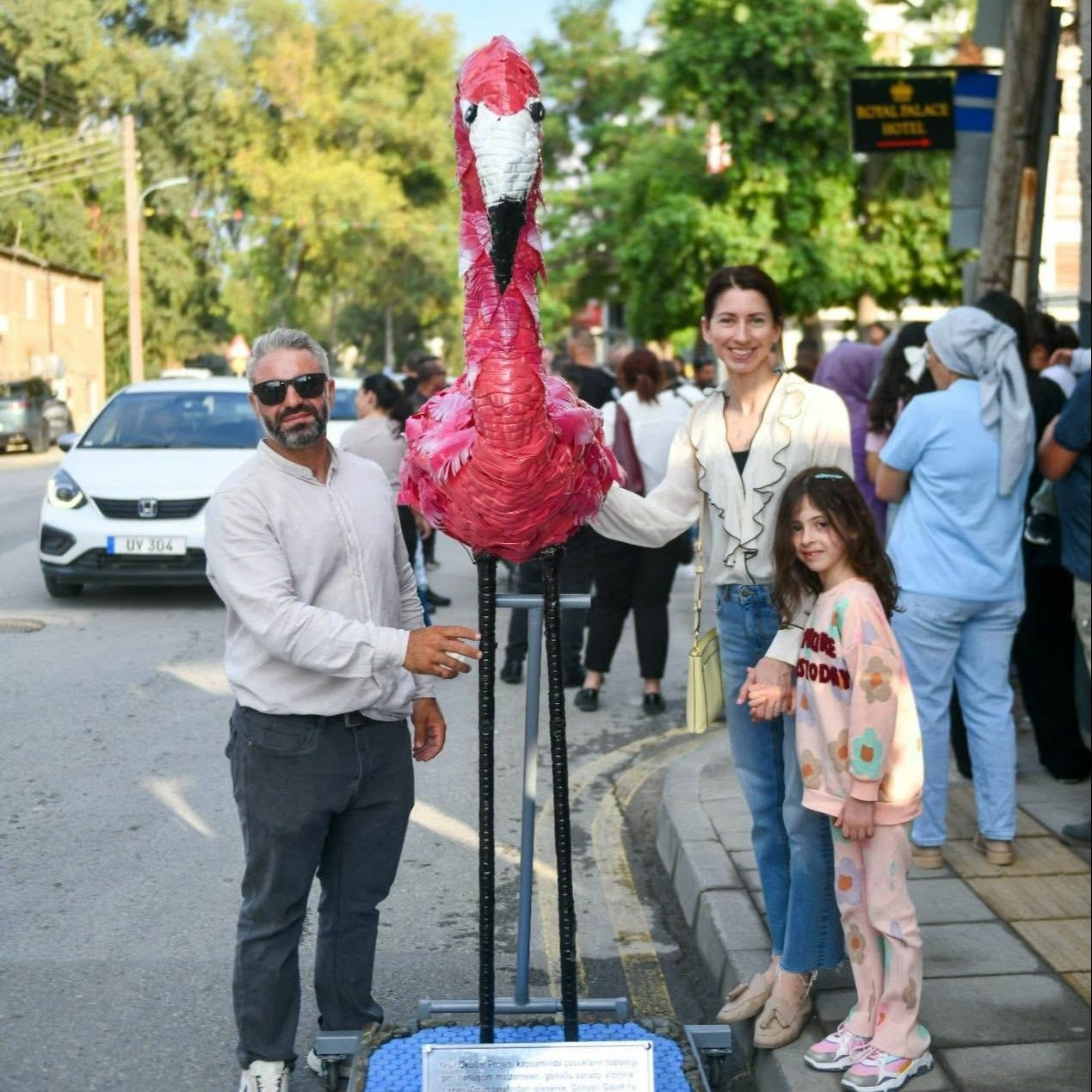 Kortejin en dikkat çeken unsuru, geri dönüşüm malzemelerinden yapılan flamingo maskot oldu.