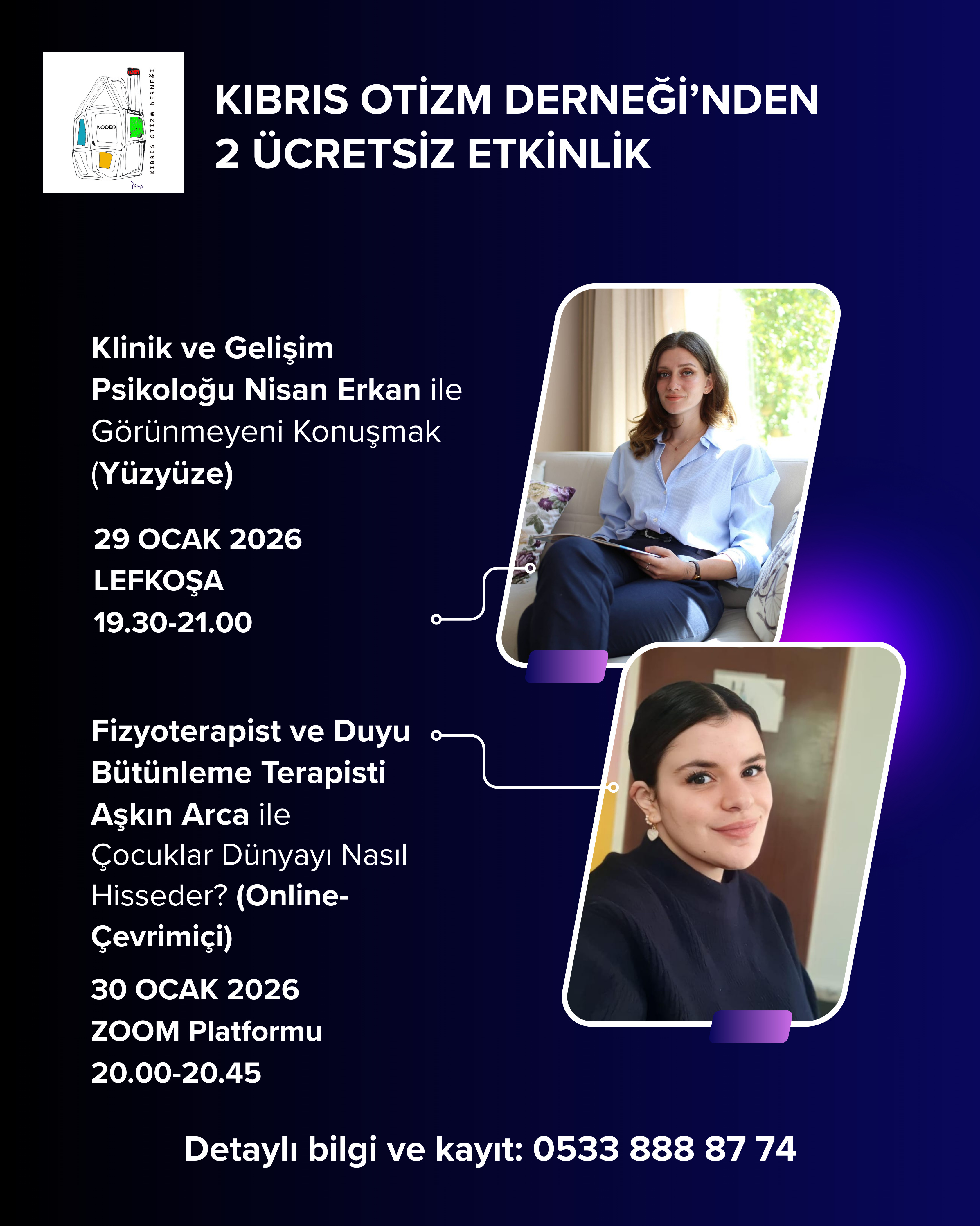 Kıbrıs Otizm Derneği (KODER), otizm spektrumundaki bireylerin ailelerine yönelik destek çalışmalarına iki ücretsiz etkinlikle devam ediyor.