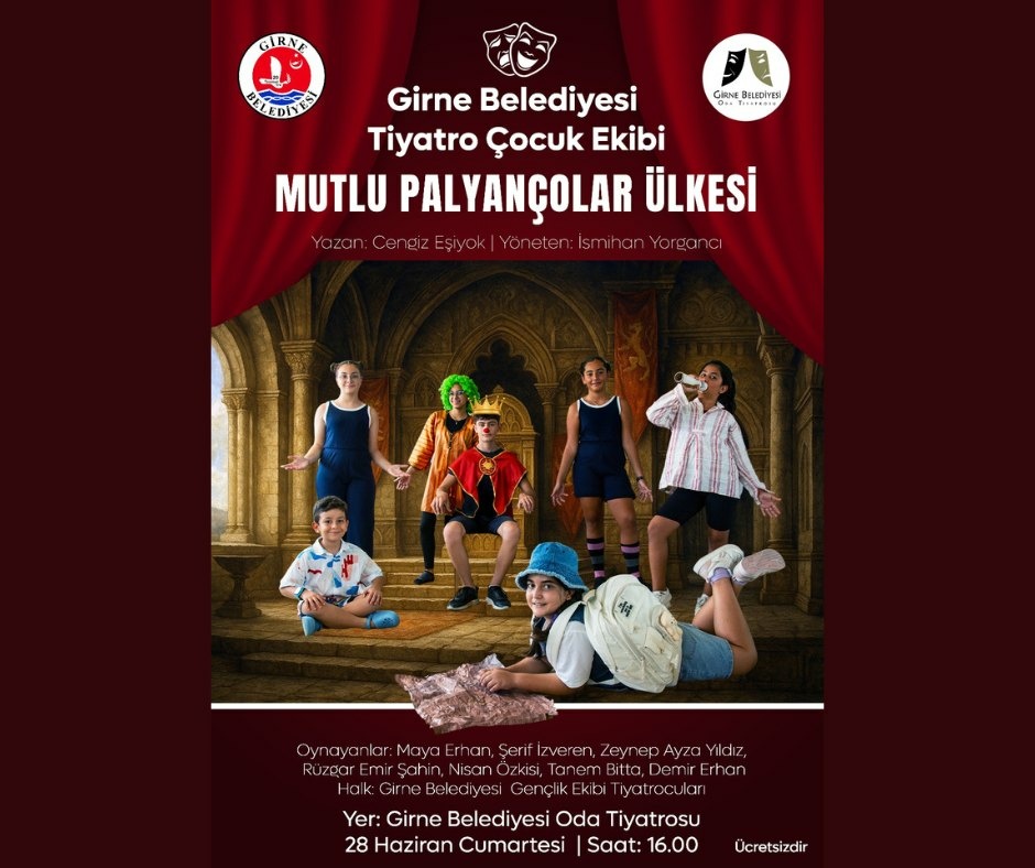 Girne Belediyesi Tiyatro Çocuk Ekibi'nin "Mutlu Palyançolar Ülkesi" adlı tiyatro oyunu, cumartesi günü Girne Belediyesi Oda Tiyatrosu’nda ücretsiz olarak sahnelenecek.